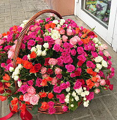«Удачный подарок» - это корзина, заполненная множеством кустовых роз. Цвета варьируются от белого до красного, но каждый цветок шикарно вписывается в общую композицию. Розы символизируют любовь, хорошее отношение, и чистоту намерений и подойдут возлюбленным, друзьям и коллегам, которые точно обрадуются такой стильно оформленной красоте в корзинке.